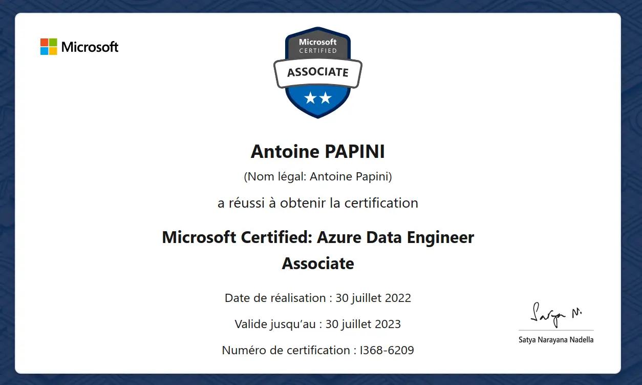Depuis 2018, j’utilise la suite Azure pour (i) collecter, (ii) stocker, (iii) restituer les données aux Directions Métiers.